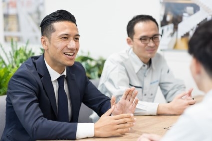 <入社後の教育・研修について> まずは建設業界や鉄骨階段についての基礎知識を学ぶことからスタート。必要に応じて自社工場での見学も行います。並行して先輩の同行営業も行います。約半年を目安に一人立ちしていきましょう!